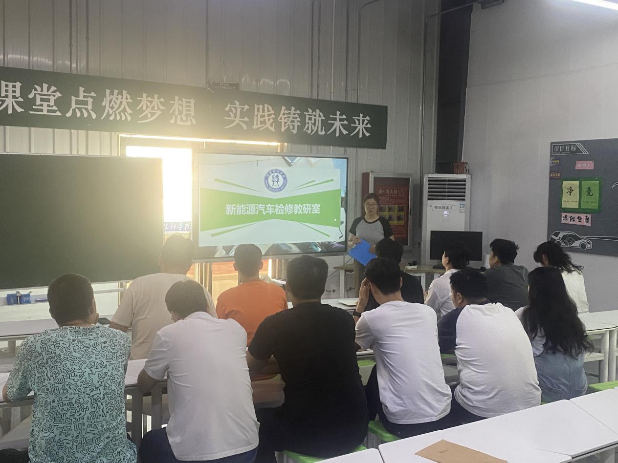为助力教师精准把握河南省及郑州市优秀论文比赛、优质课比赛、教学设计及课件制作等五项比赛(以下简称“五赛”)备赛方向,提升教师参赛积极性和竞争力,9月9日下午,新能源汽车检修教研室在实训车间召开“五赛”赛前综合赋能动员会。会议由教研室副主任姚梦珂主持,教研室全体成员参加。