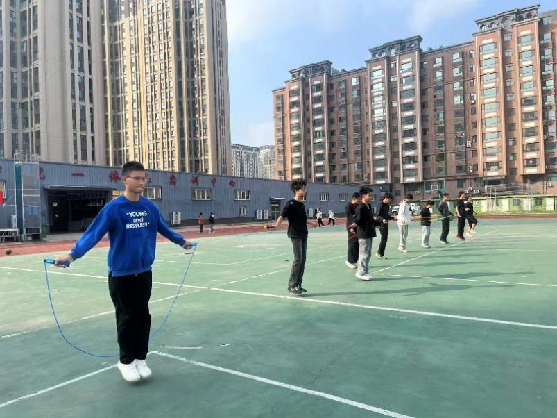 紧接着上场的是25无人机3班。他们同样斗志昂扬,起跳迅速,动作充满力量。比赛中段,他们一度试图加快频率,挑战更高速度,虽偶有因节奏过快导致的拌绳小插曲,但队员们反应迅速,立刻调整,展现了不服输的劲头和良好的应变能力,整个过程充满了拼搏的激情。