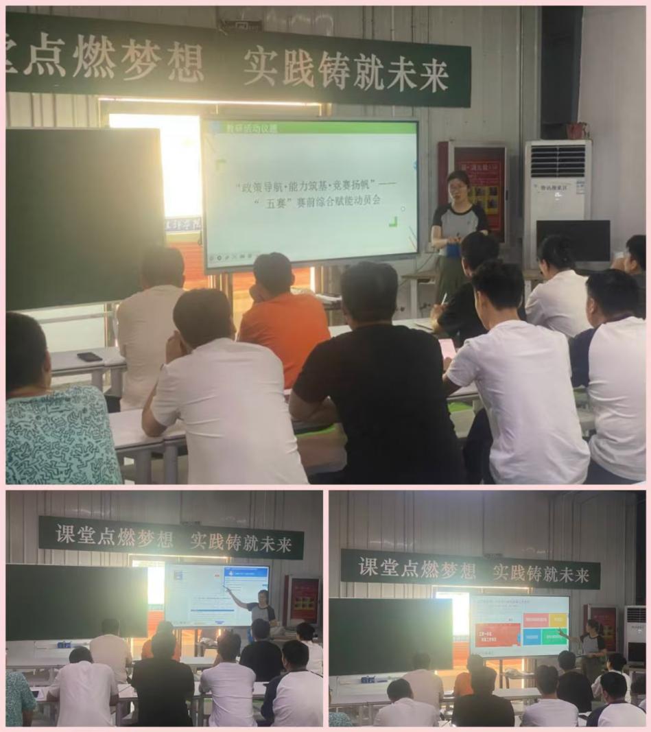 为助力教师精准把握河南省及郑州市优秀论文比赛、优质课比赛、教学设计及课件制作等五项比赛(以下简称“五赛”)备赛方向,提升教师参赛积极性和竞争力,9月9日下午,新能源汽车检修教研室在实训车间召开“五赛”赛前综合赋能动员会。会议由教研室副主任姚梦珂主持,教研室全体成员参加。
