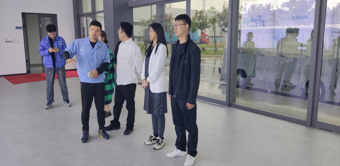 在企业负责人黄金主任的带领下,李笑满院长等先后参观了上汽郑州公司的车身99%以上自动化率的技术实现路径、智能物流调度系统,深入了解了动力电池车间的E2魔方电池及PHEV长续航电池装配生产工艺流程。