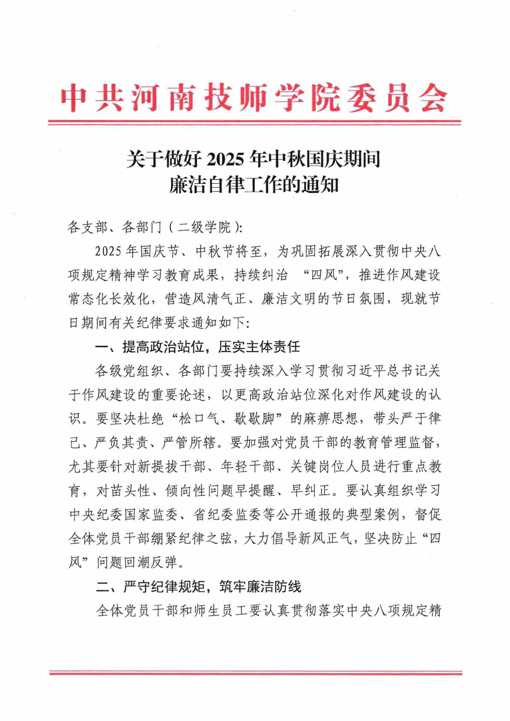 关于做好2025年中秋国庆期间廉洁自律工作的通知