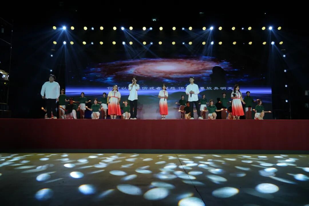 第三篇章《筑梦新程》以展望未来为主题。歌伴舞《复兴的力量》气势磅礴,激励师生勇担时代使命;歌曲《若月亮没来》温情动人,引发共鸣;舞蹈《青春风采》与情景剧《是老师,是学生》真实再现校园生活的点滴感动;最后,大合唱《明天会更好》将整场演出推向高潮,表达了对学校美好未来的真诚祝福。