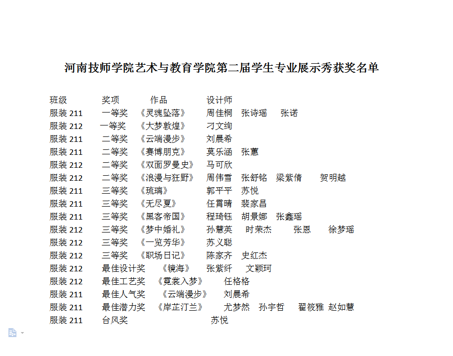 经过专家评委现场打分,本次展演共评选出一等奖2项、二等奖4项、三等奖6项,最佳设计奖、最佳工艺奖、最佳人气奖、最佳台风奖、最佳潜力奖各1项。同时,形象设计专业学生为本次展演演职人员提供了全流程的化妆保障服务。
