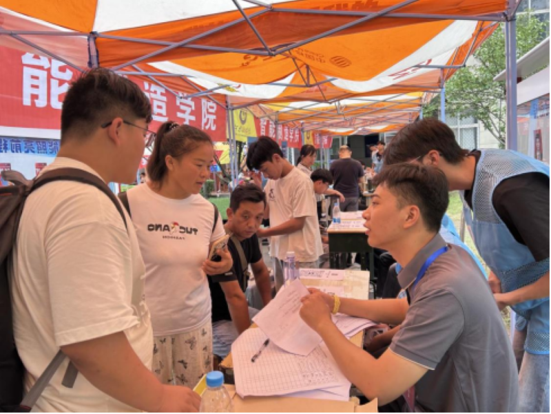 报到现场,学院设立“党员先进示范岗”和“学院接待处”,安排专业教师团队为新生及家长解答专业培养方案、课程设置、就业前景等问题。同时,结合专业特色,接待区展示了数控车工件等作品,直观展现专业魅力。