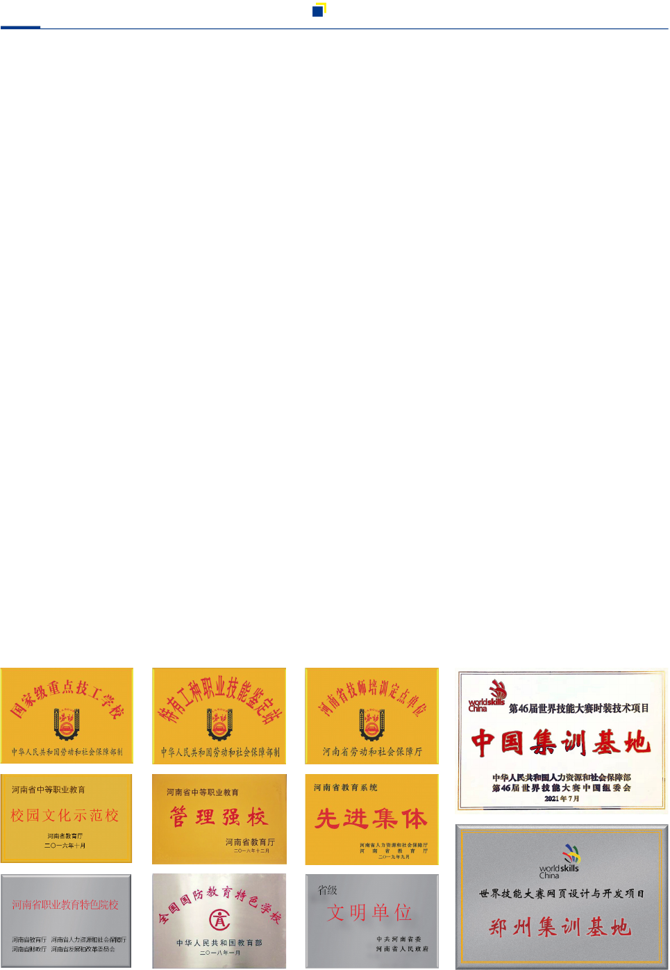 国家高技能人才培训基地,世界技能大赛时装技术项目国家集训基地,全国国防教育特色学校,河南省高技能人才培养示范基地,